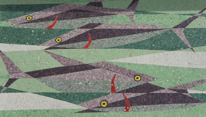 a praia principal, limitada pelo porto de abrigo a Sul e o promontório a Norte, que nos...