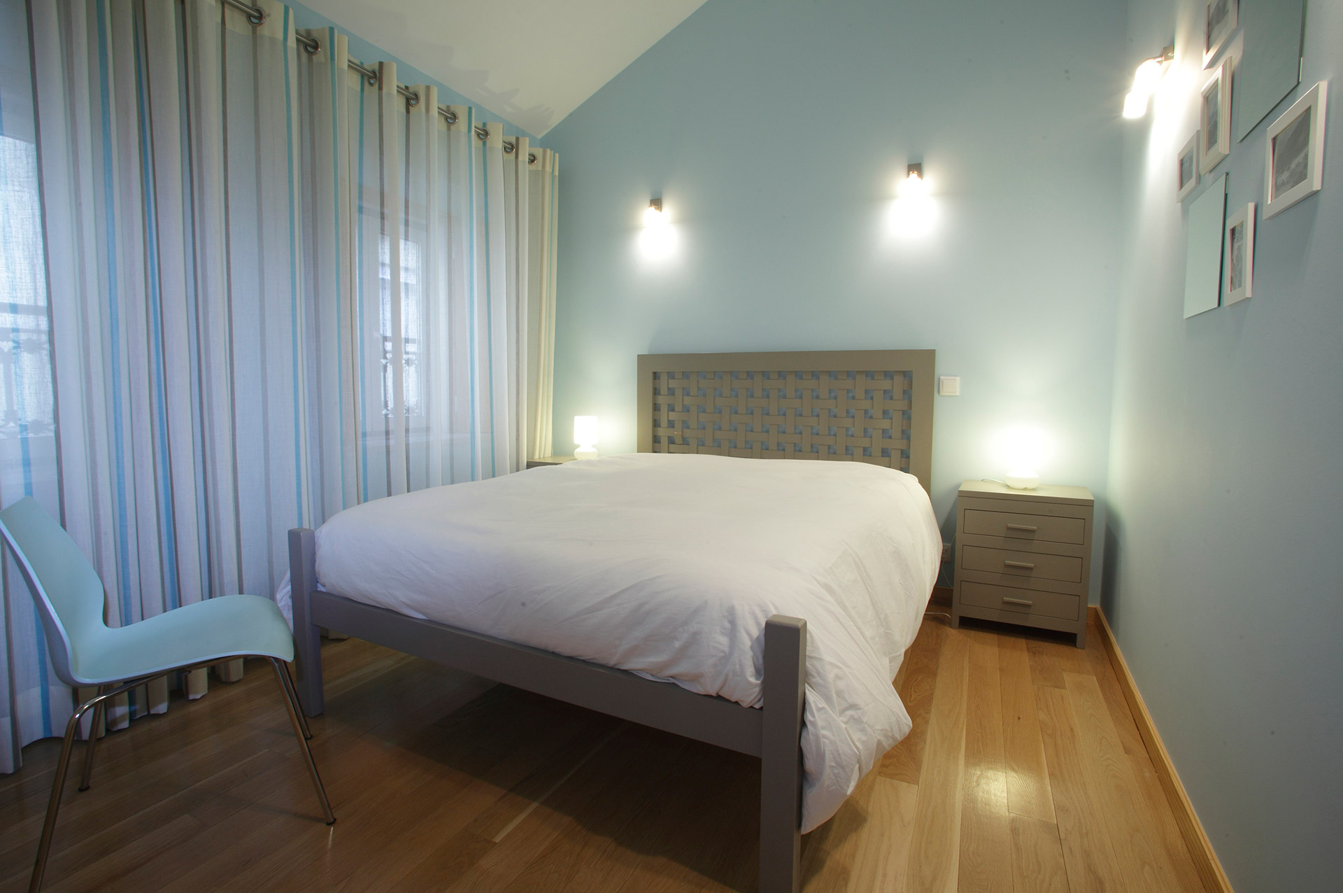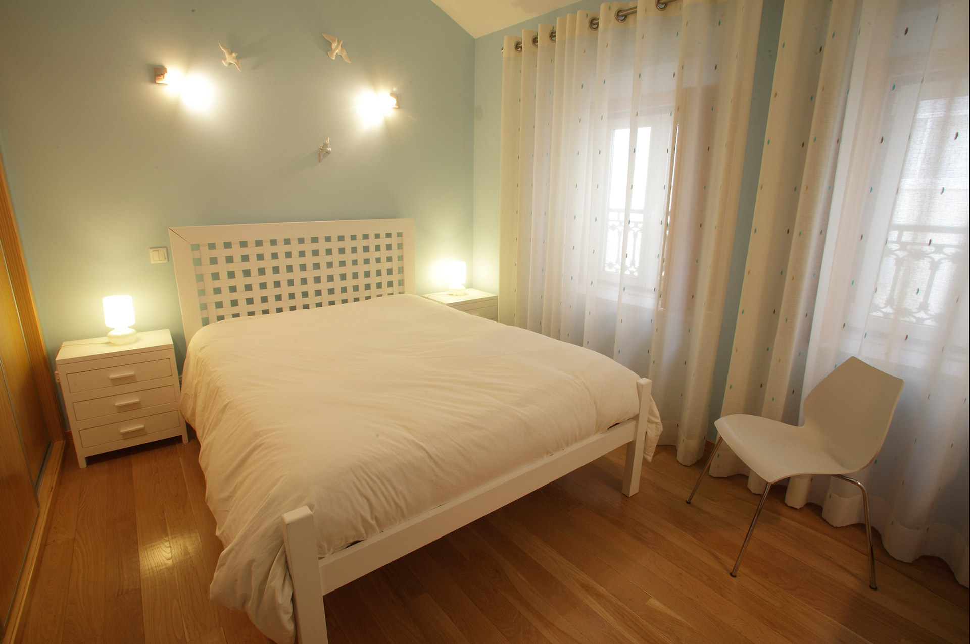 2 quartos com camas de casal, roupeiros de grandes dimensões, cadeiras, cómoda e espelho,